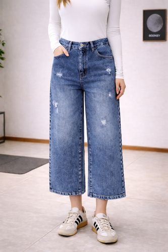 ناموجودشلوار بوتکات زنانه دمپا ریش آبی ابر و بادی کد 10013