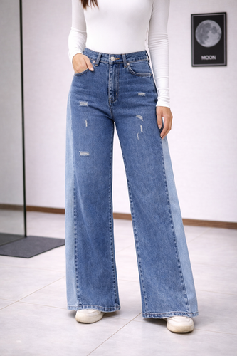 شلوار واید زنانه آبی ابر و بادی کد 10056